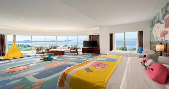 十二岁以下儿童与父母同住免费,加床另付,加床费为RMB300元/床/晚,含单人早餐。不占床位的儿童以身高计算,1.2米以下小孩早餐免费,1.2-1.5米小孩早餐RMB68元/位/晚,1.5米以上早餐RMB128元/位/晚。
